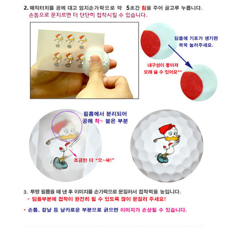韓國 Magic Touch 轉印貼紙 ★產地:韓國 ★多種圖案可供選擇(隨機出貨),讓小白球呈現自我風格. ★圖案可隨時更換,增加打球樂趣. ★使用方法:先把小白球擦乾淨,再把要轉印的圖案緊壓在小白球上,來回摩擦,圖案即可轉 印在小白球上. ★如要轉換圖案,用膠帶把原本圖案來回按壓,即可把圖案清除.